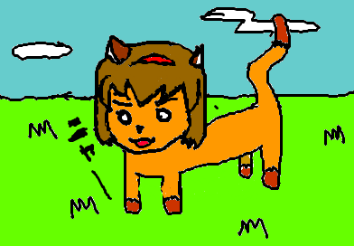 歩いていると突然首輪のついてないミスラがやってきたんです。